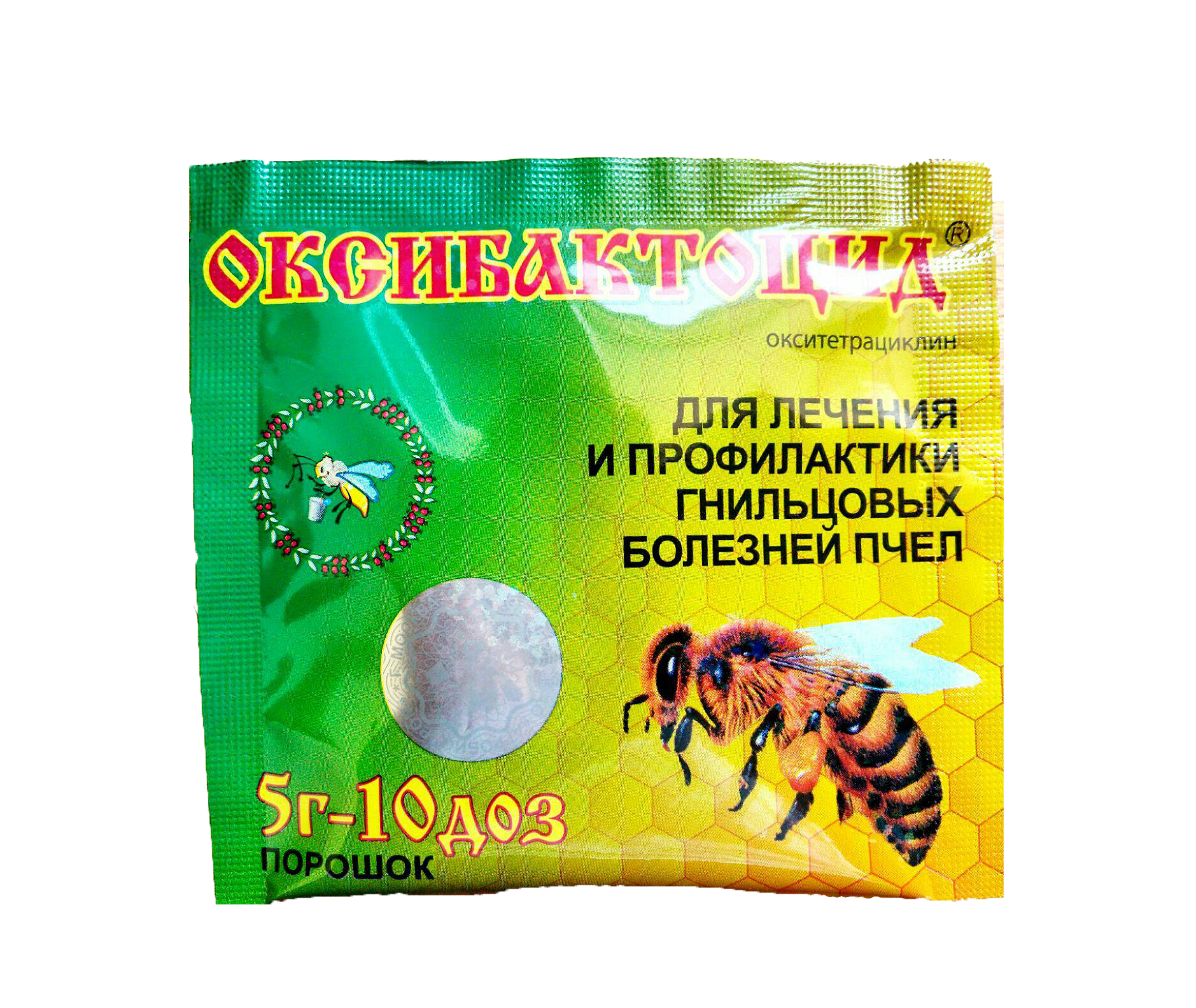 Лекарственный порошок для лечения и предупреждения возникновения гнильцовых заболеваний пчёл. Действующее вещество окситетрациклин.